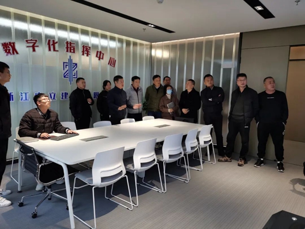 鐘局一行首先來(lái)到中立數(shù)字化指揮中心,詳細(xì)聽(tīng)取“智慧工地”系統(tǒng)的運(yùn)用情況,并指出信息化控制系統(tǒng)要做到好用、實(shí)用,為企業(yè)管理提高工作效率。